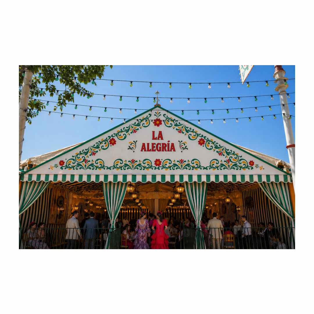 Pañoleta para casetas de feria fabricada en lona PVC de 510 g, resistente y duradera. Incluye refuerzo perimetral y ollados para una instalación fácil y segura. Ideal para personalizar tu caseta en el Real.